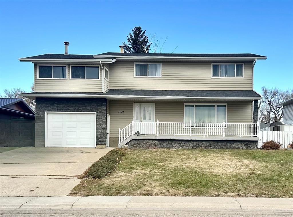 Welcome to 1120 – 2 Avenue E, a spacious and inviting family home perfectly positioned across from the Brooks Golf Course. This property combines character, functionality that’s ideal for families who value both comfort and convenience. The main floor welcomes you with a bright, south-facing living room filled with natural light and unobstructed view of the golf course across the street. A formal dining room provides a great setting for family gatherings, while the kitchen features timeless white cabinetry, generous countertop space, and eat-in nook. Also on this level is a convenient 2pce bathroom that includes laundry facilities. Upstairs, you’ll find 4 comfortable bedrooms, a 4pce bathroom, and a cozy family room with beautiful cedar accent wall, abundant windows, and a warm wood stove…perfect for relaxing evenings or movie nights. The basement adds even more living space with a second family room featuring a gas fireplace, a den or hobby area, a 3pce bathroom, and plenty of storage. Enjoy outdoor living on the screened back deck overlooking a large, private backyard complete with underground sprinklers and RV parking. A single attached garage and concrete driveway provides ample parking. This home offers excellent value in a sought after location close to schools, parks, and the golf course.